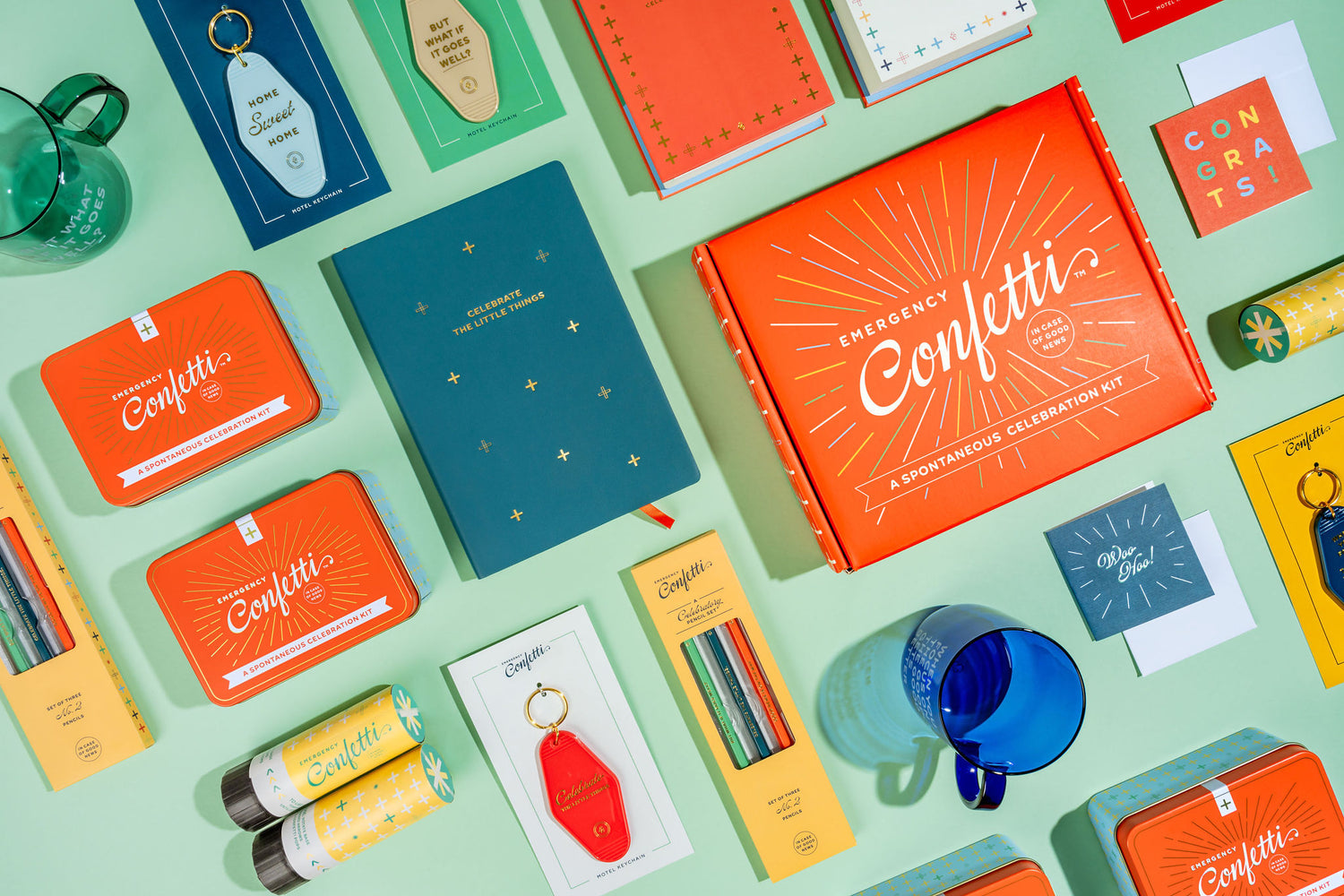 Celebration kits are items we created for easy, giftable celebratory moments. They were designed to be able to give as-is to a friend or loved one when they receive good news. From birthdays and engagements, to buying a new home or landing a new job, we believe there are so many reasons to celebrate. Giving someone a celebration kit helps them feel seen and loved!